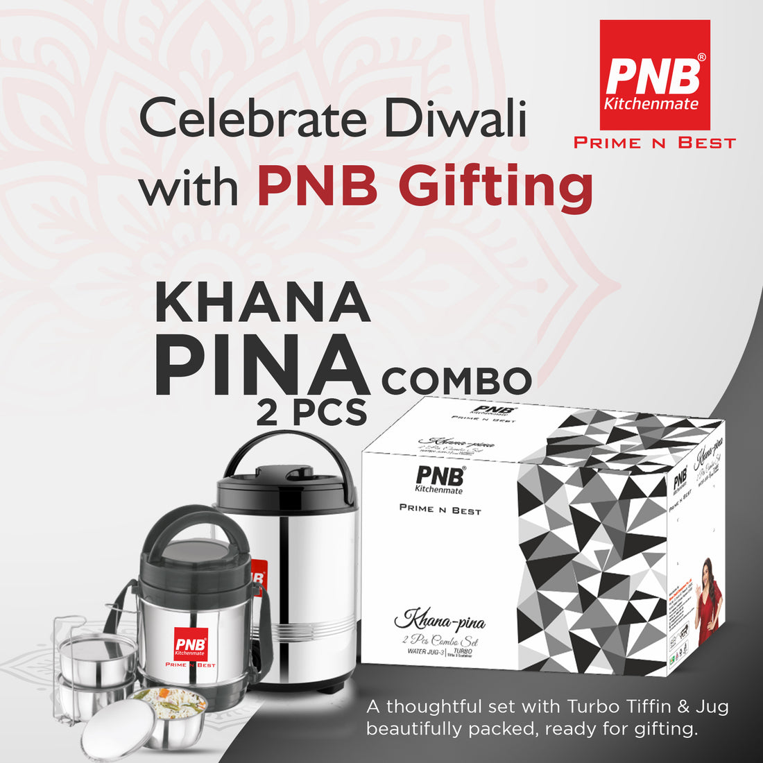 Khana Pina 2-Piece Combo Set | Turbo Tiffin + 3-in-1 Jug (Set of 3)