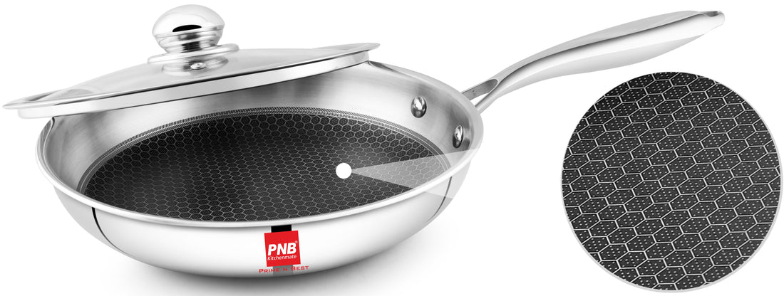 PNB Kitchenmate Inox Triply Curve Frypan with Lid - Stainless Steel Pan with steel Lid ...