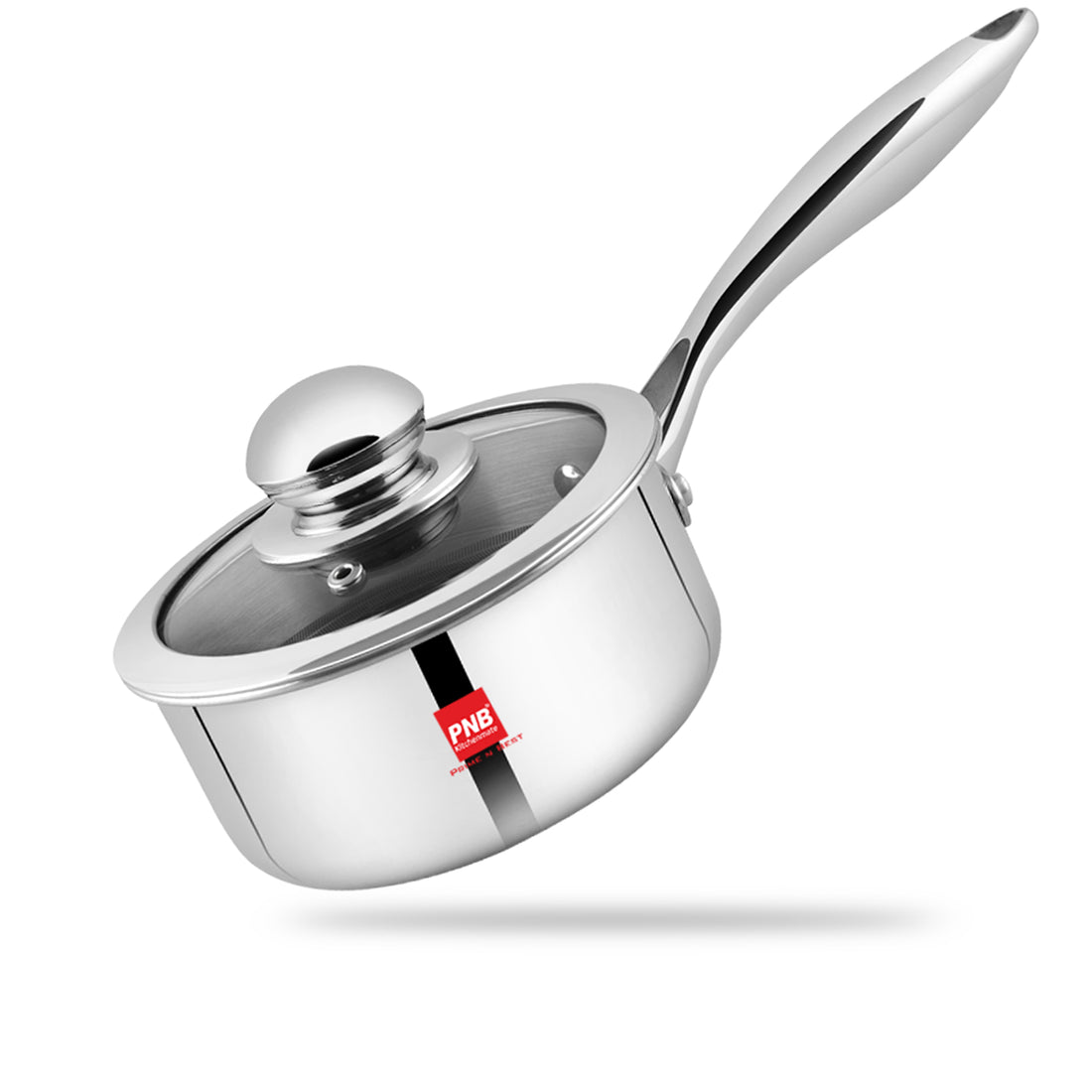 PNB Kitchenmate Inox Triply Saucepan with Lid - Stainless Steel saucepan - Gas & Induction...