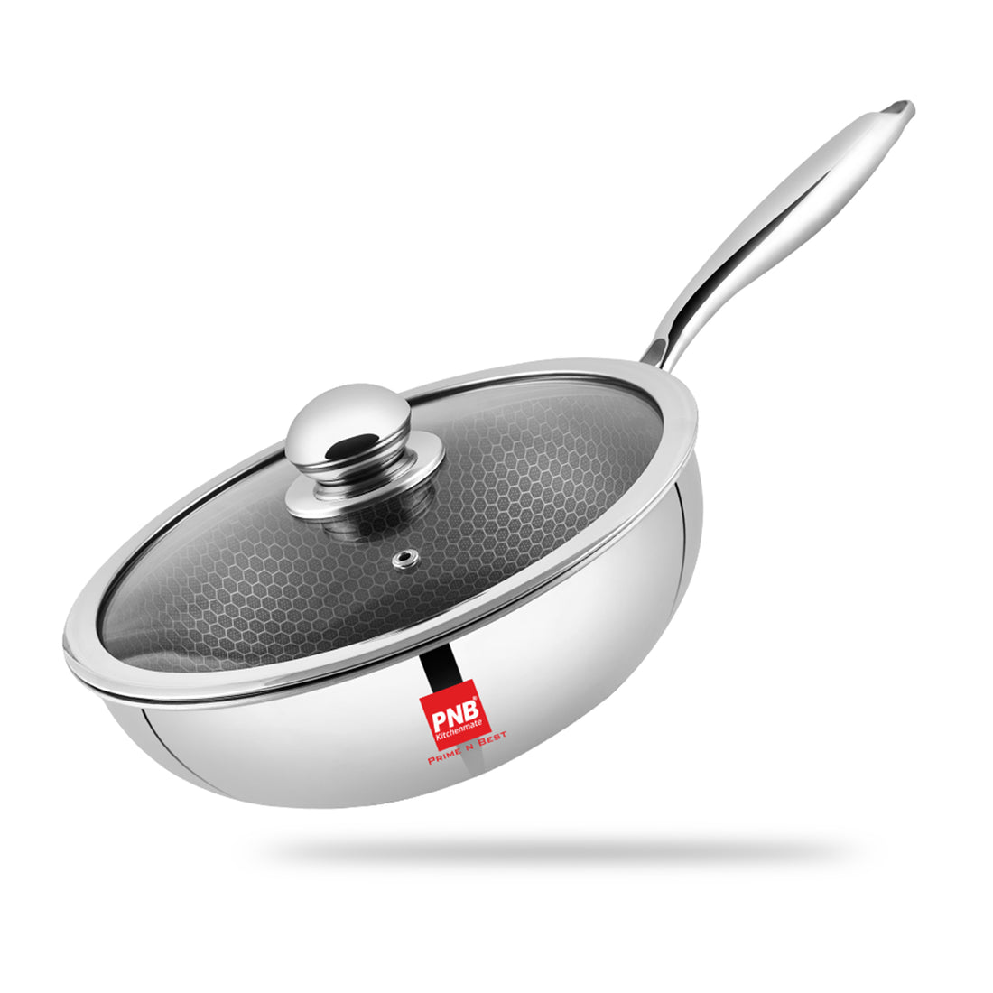 PNB Kitchenmate Triply Wok with Lid - 3-Ply Clad Construction - 24 cm & 28...