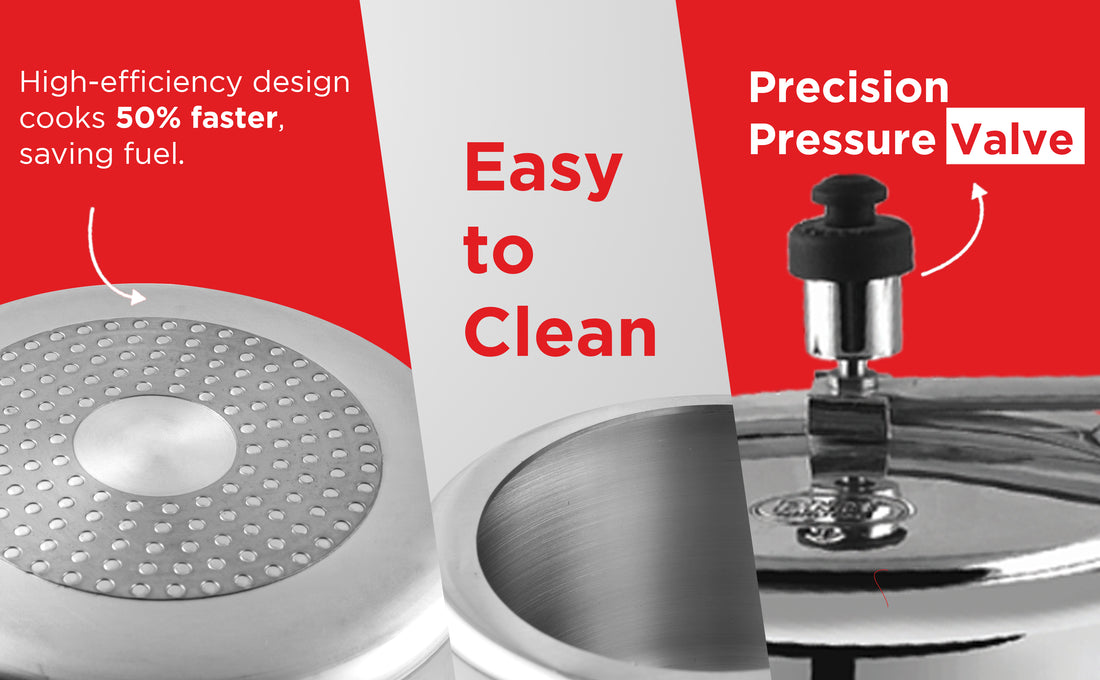 Versatile Compatibility: This inner lid pressure cooker works perfectly on traditional gas stoves and it is perfect for the classic Indian kitchen, ensuring efficient and consistent cooking results.