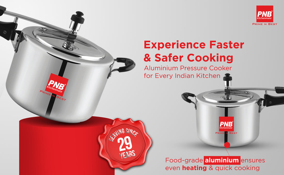 PNB Kitchenmate Aluminium Pressure Cooker, 1 Ltr Capacity - Gas Stove Pressure Cooker with Inner Lid - Heavy Gauge Cooker with ISI Certification, 4mm Thickness