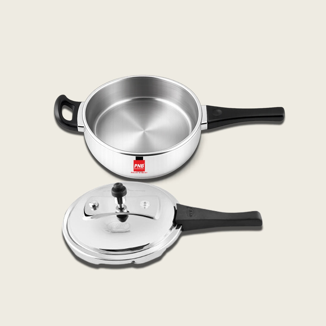 PNB Kitchenmate Excel Cooker: Stainless Steel Pressure Cooker Induction and Gas Base, Induction Pressure Cooker With Outer Lid, Induction Cooker, Mirror Finish, Silver