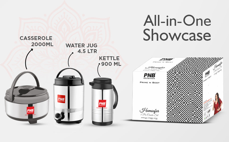 Humsafar 3-Piece Combo Set | Cosmos 2000ml Container + 4.5L Jug + 900ml Kettle