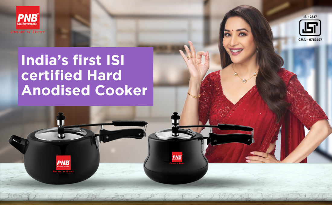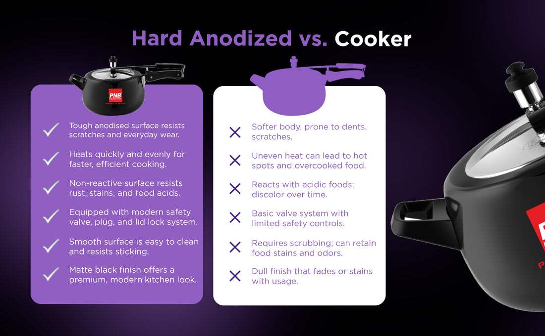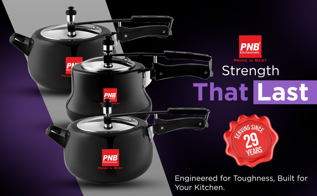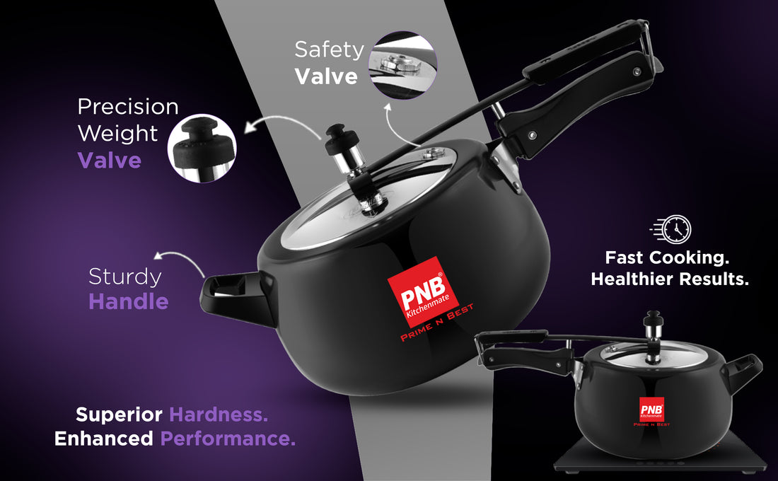 PNB Kitchenmate Orchid Pressure Cooker: Hard Anodised Pressure Cooker Induction and Gas Base, Induction Pressure Cooker With Inner Lid, Induction Cooker, Mirror Finish, Thickness 3.25 mm, Black | 2L, 3L & 5L