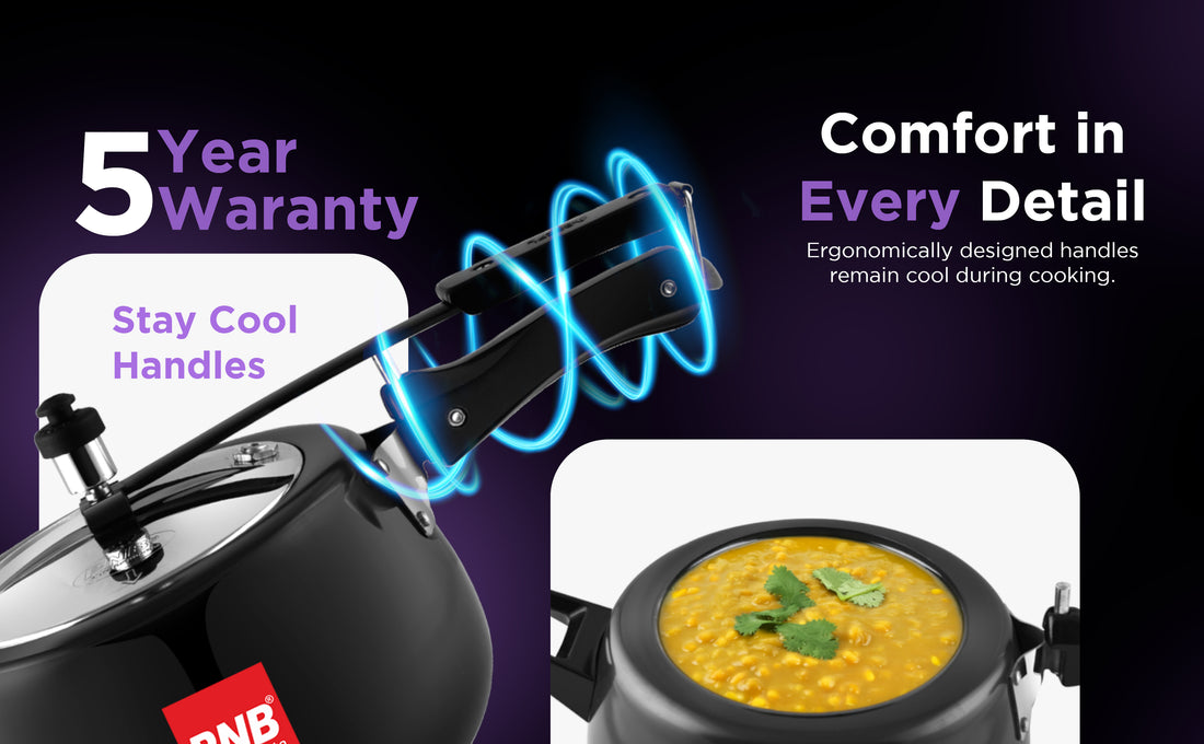 LITER CAPACITY: The 2, 3 & 5 litre pressure cooker is perfect for small & medium families, efficiently preparing everything from daily dal and rice to biryanis and curries, making it the perfect companion for Indian cooking.