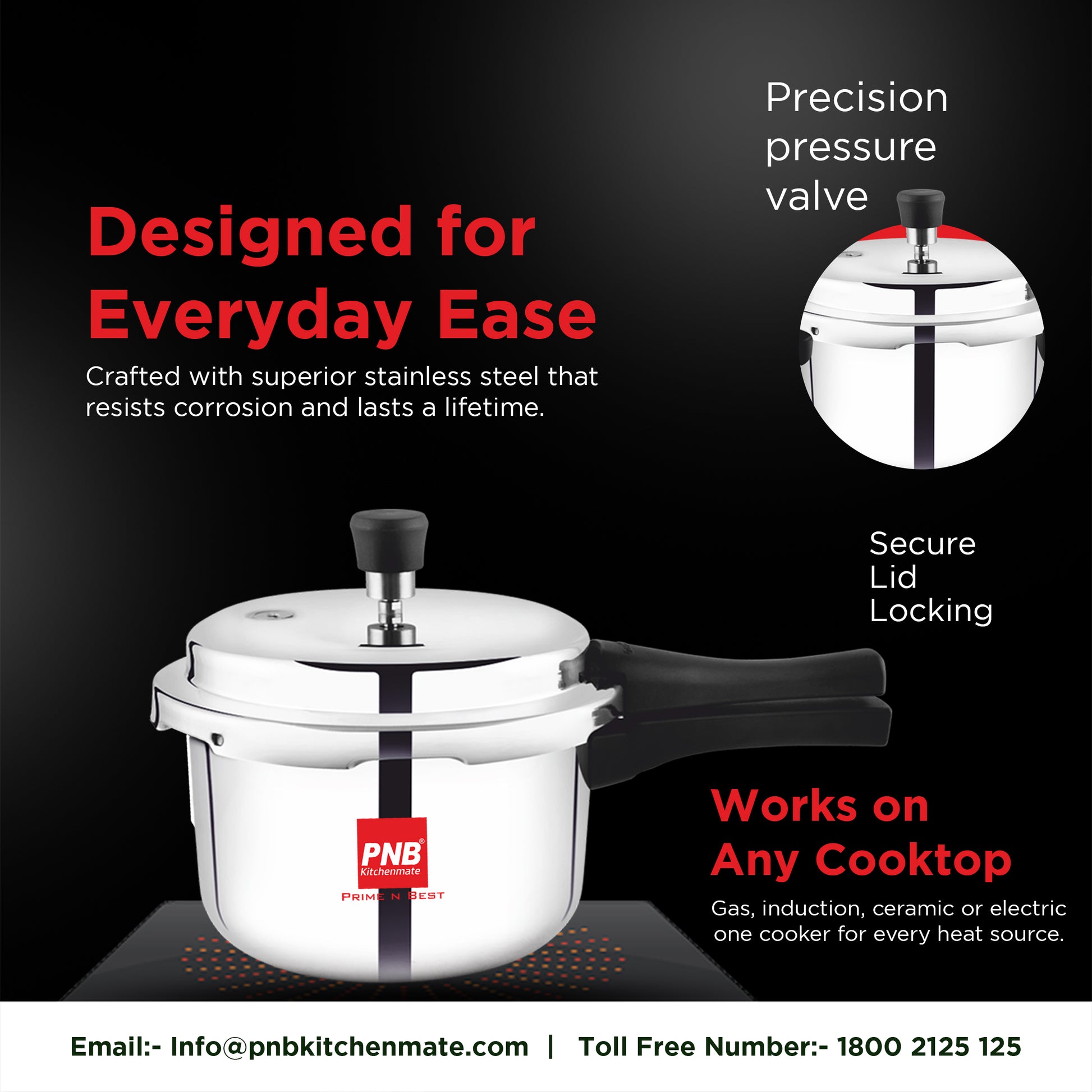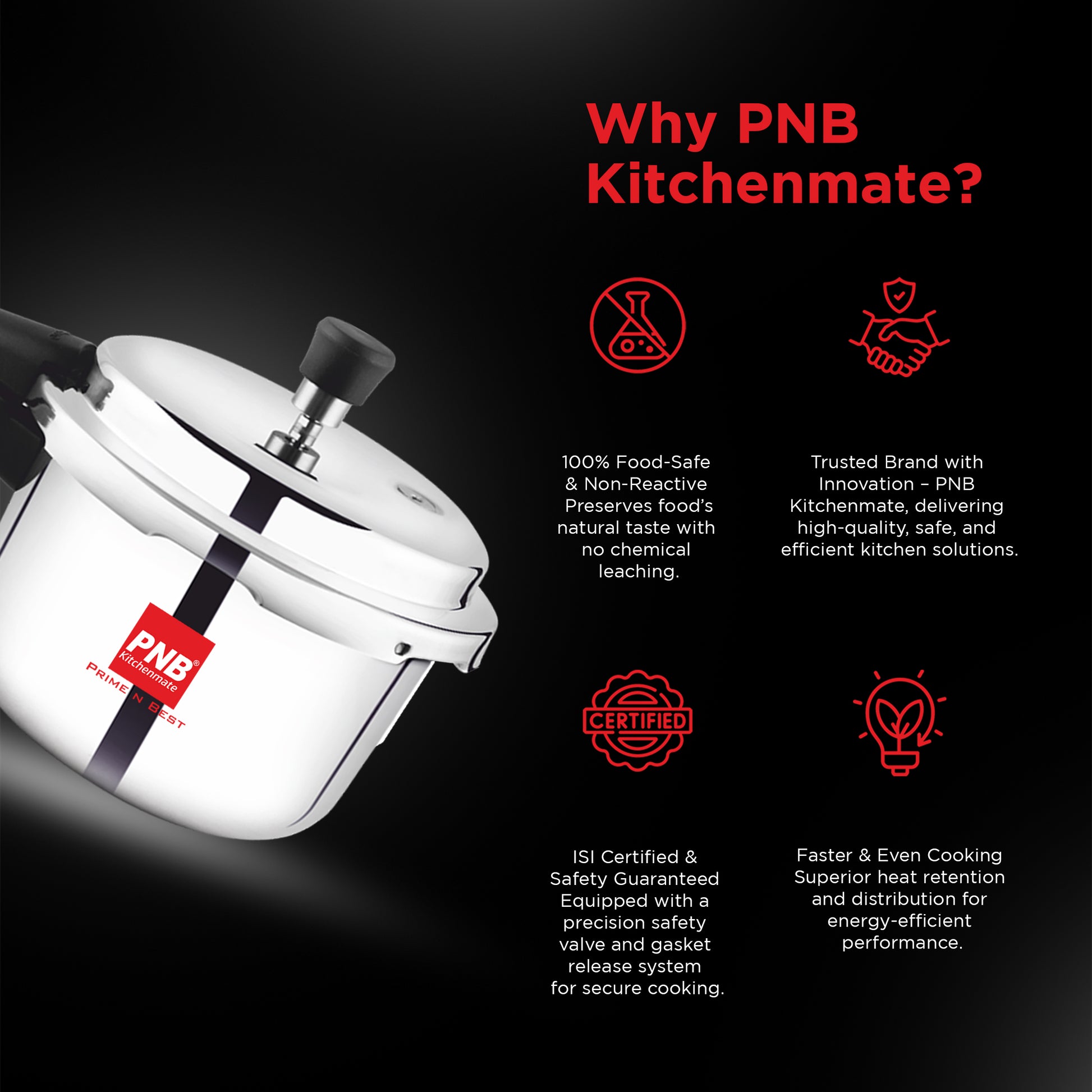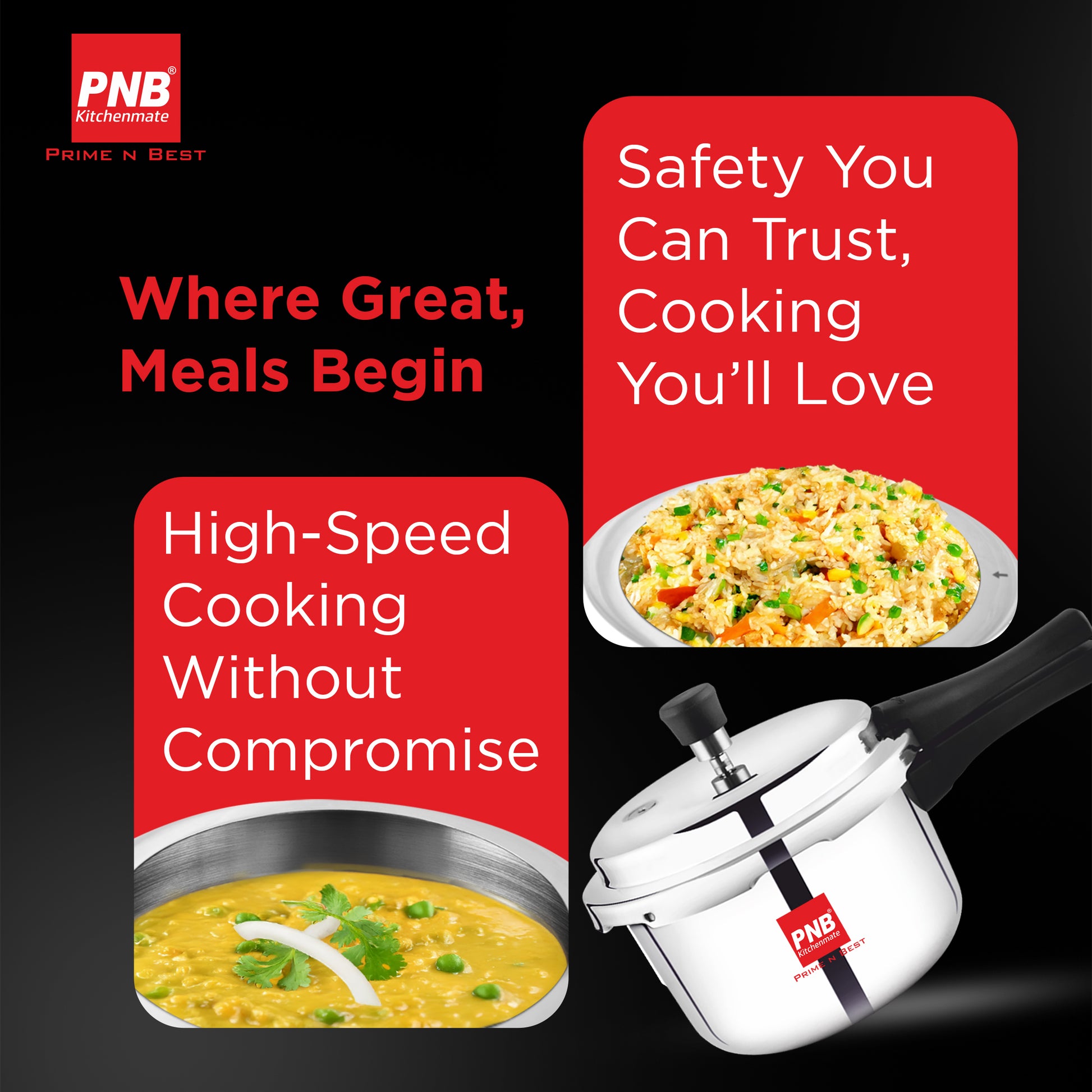 Upgrade your daily cooking with the energy-efficient PNB Kitchenmate Triply Pressure Cooker Combo. Featuring a 2.5-liter and 3-liter capacity, this premium outer-lid set delivers faster, even heating without burning or sticking. Backed by a 5-Year Warranty, it is built to last in any modern kitchen.