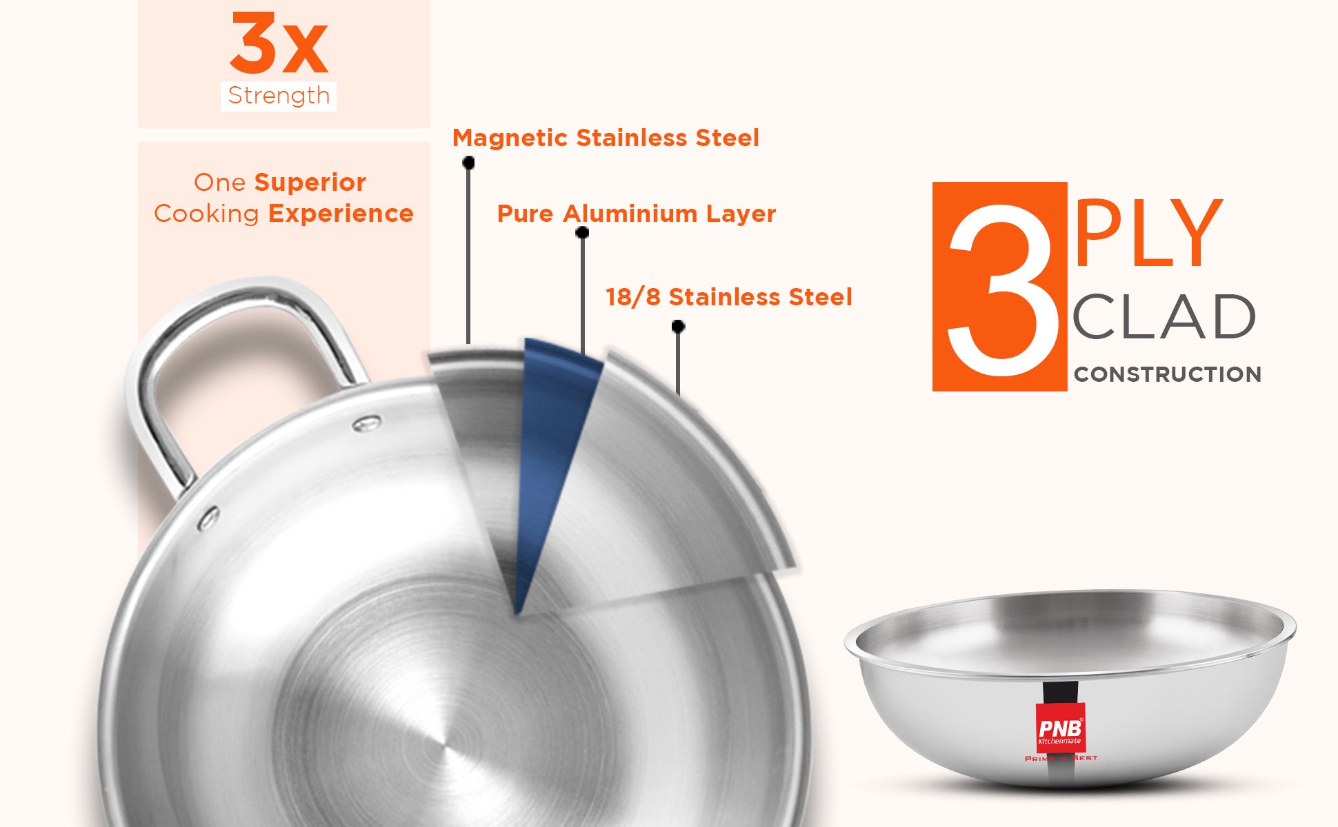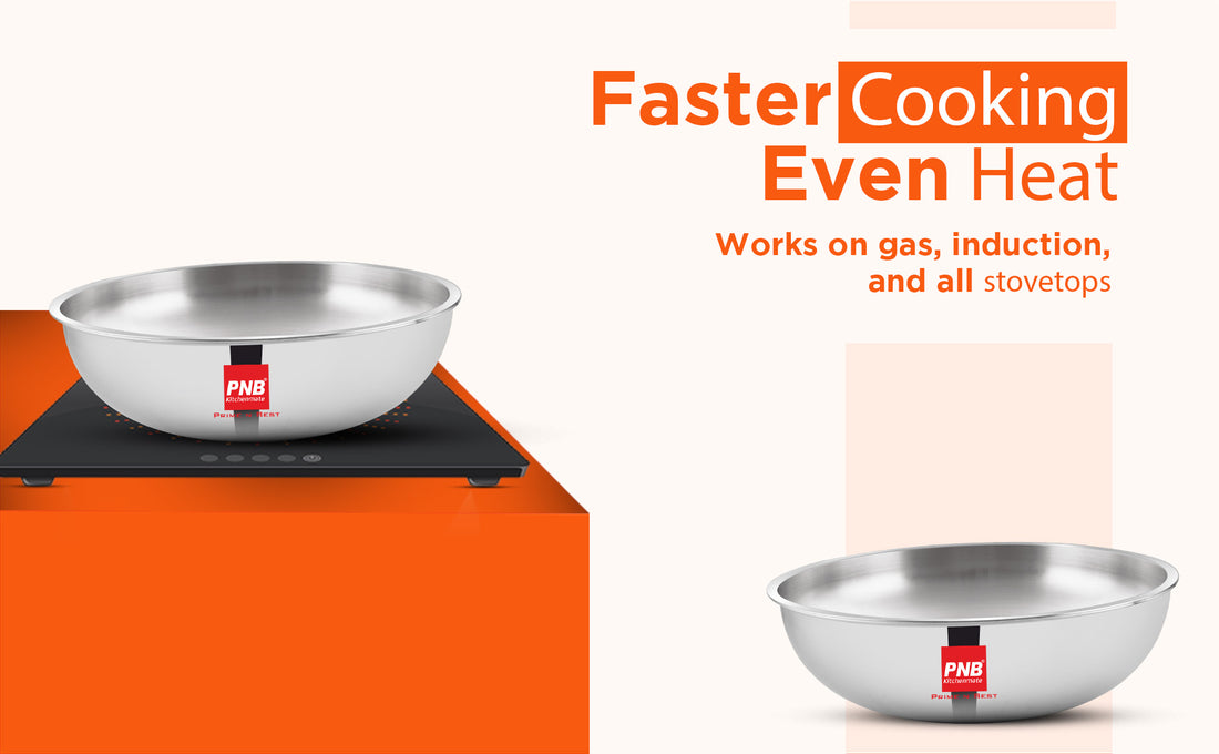 3-Ply Clad Construction: Our tasla triply stainless steel features a 3-ply construction with a combination of magnetic stainless steel, pure aluminum, and 18/10 stainless steel, ensuring superior heat distribution and durability for perfect cooking results every time.