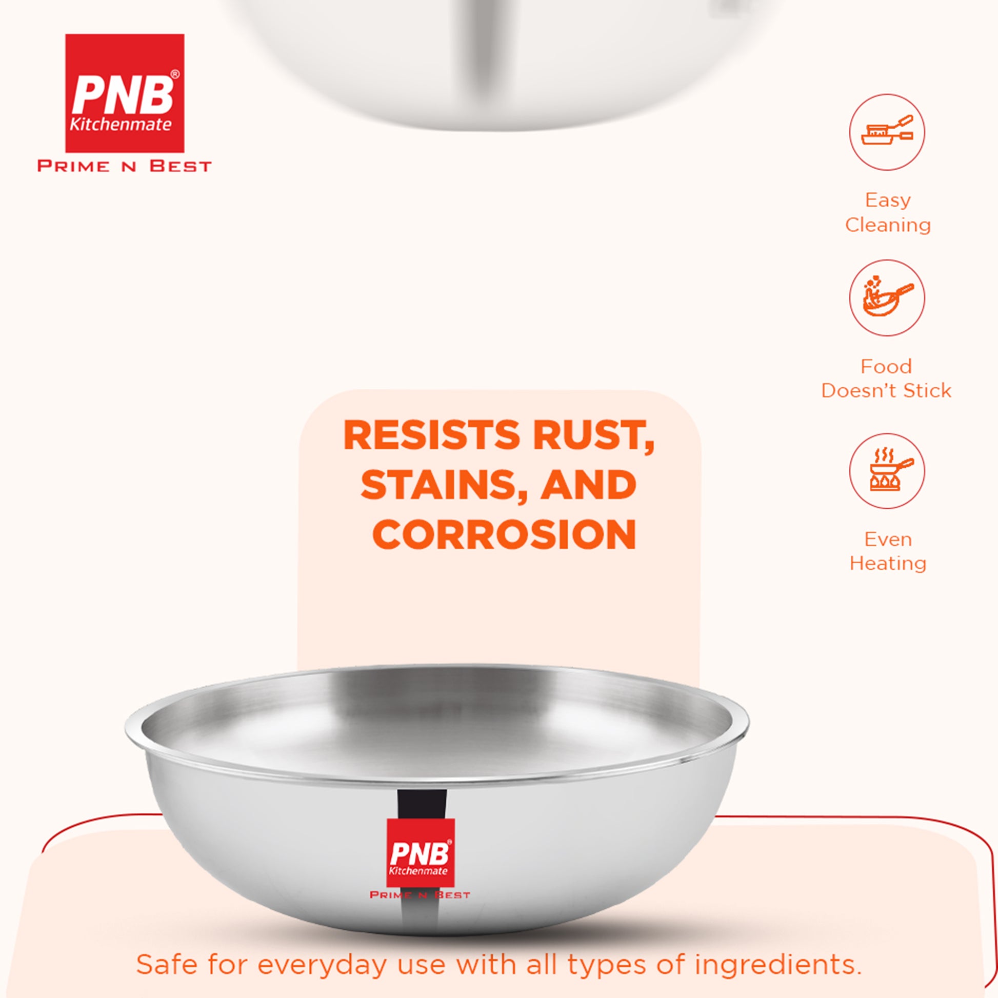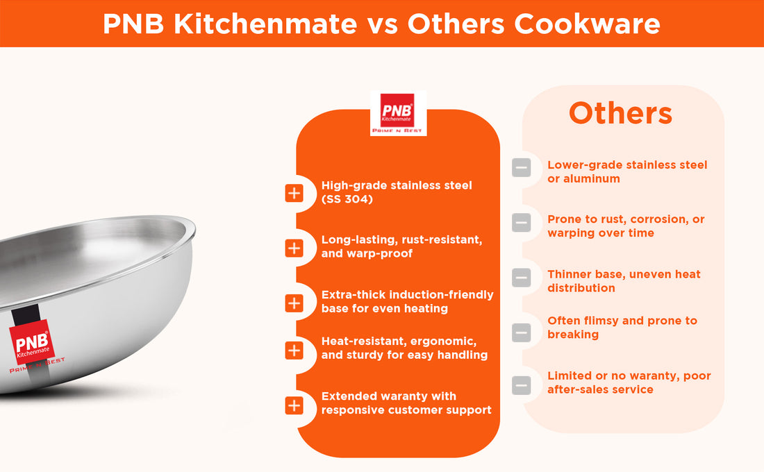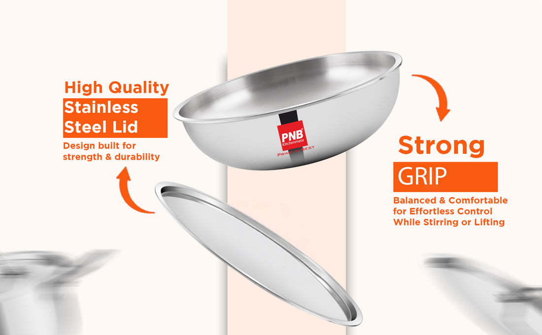 PNB Kitchenmate Triply Tasla - 3-Ply Clad Construction - Stainless Steel Tasla with 10 Year Warranty - Cookware for Indian Cooking