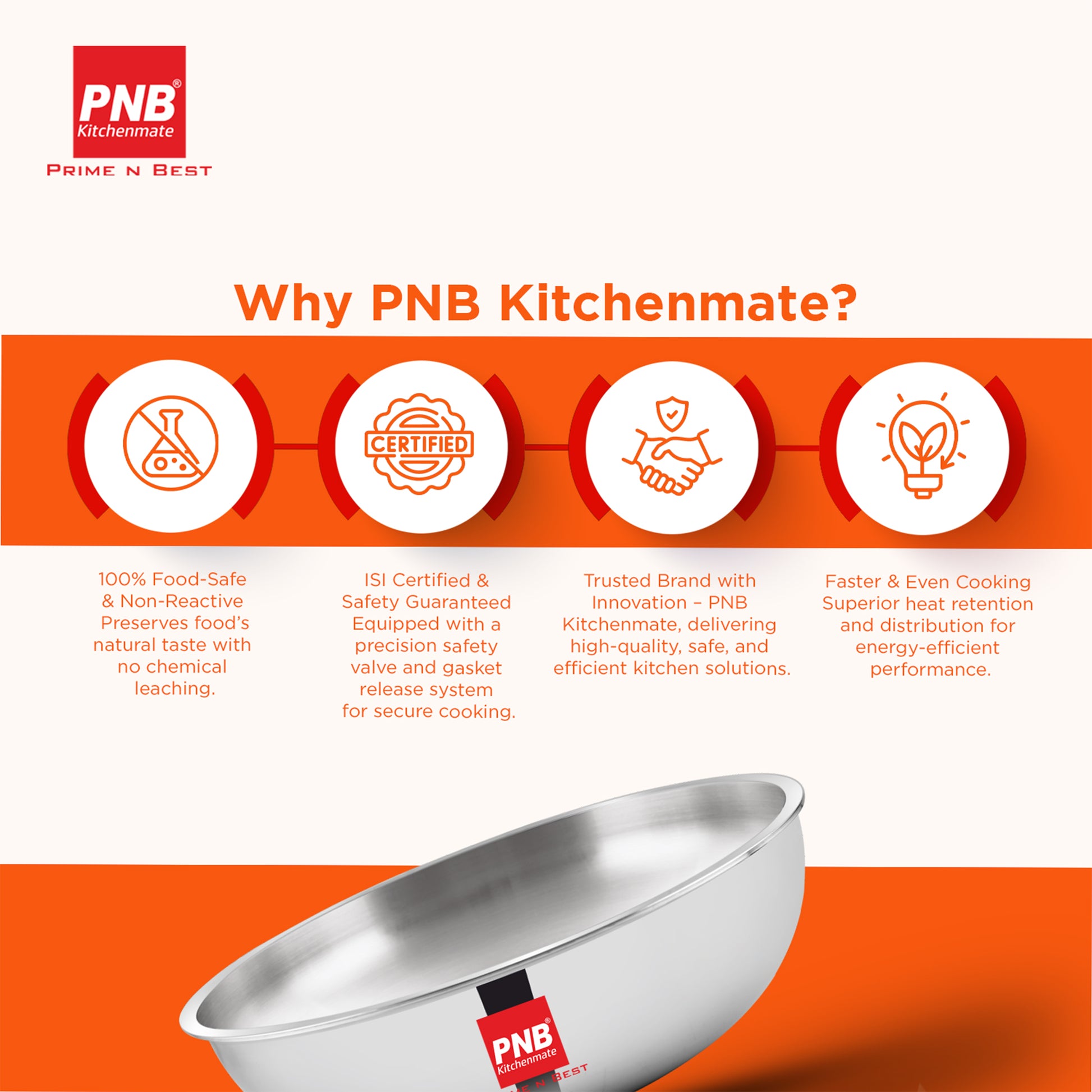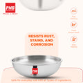 Enhanced Cooking Efficiency: This stainless steel tasla triply construction enhance cooking efficiency by distributing heat evenly across the surface. This tasla reduces cooking time and conserves energy. The efficient heat distribution ensures your food is cooked thoroughly and retains its nutritional value.