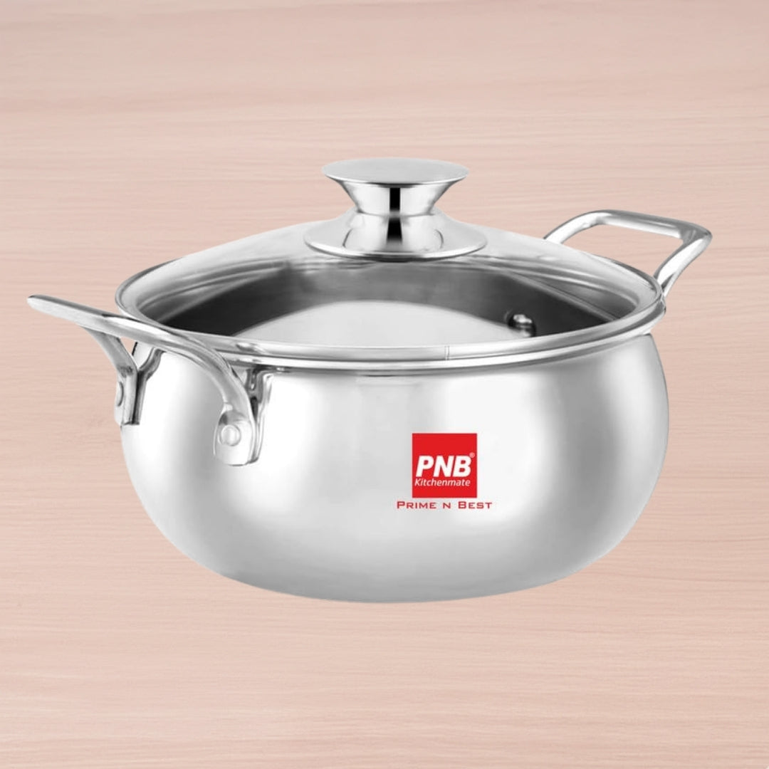Glass Lid: Our stainless steel handi comes with a durable glass lid that helps retain moisture and flavor while cooking, ensuring delicious and aromatic dishes every time.